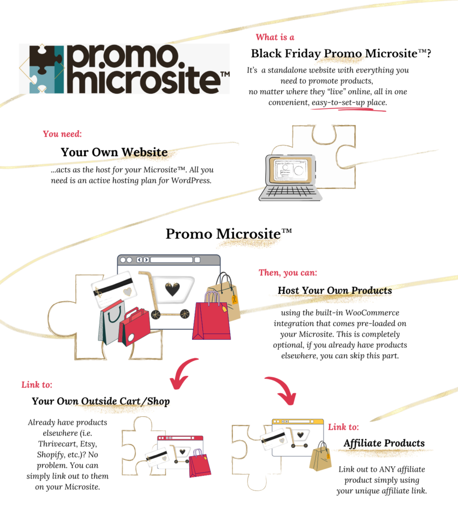 Use the built-in cart to set up and start selling your own products using the WooCommerce integration right from this website! (Optional, but this is especially helpful if you don’t have a shop set up anywhere to promote your own products yet.)