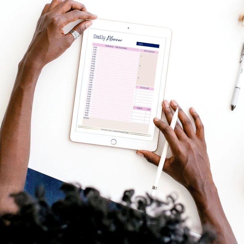 Productivity + Mindset Printable Planner Planners Productivity + Mindset Printable Planner Was $17 Now $5 Sale The Planning On Purpose Planner has everything you need to get your mindset + productivity on point as an entrepreneur!This planner includes:– Yearly Overview– Goals Planner– Intentions List– NOT To-Do List– 5-Minute Mindset Journal Page– Brain Dump– Master List– Monthly Planner– Weekly Planner– Weekly Checklist– Daily Planner– Project Tracker– Habit Tracker– Mood Tracker– NotesYour planner will be available as an instant digital download in PDF form. You can simply print it off at home or bring it to a local print shop. Or, you can upload the PDF to your favorite PDF annotating app and write on it with your Apple pencil or similar!Please note there may be color variations between the screen images and printed product based on printer quality.Please note this is a DIGITAL product. No physical product will be shipped. Your planner will be available as an instant digital download in PDF form. You can simply print it off at home or bring it to a local print shop.Due to the digital nature of this product, returns and exchanges cannot be accommodated. Quantity Enter an amount $ Add to Cart Add to Cart You may also like Sale Planners Biz Mom Planner $37 Sale Planners Keep It Together Planner $19